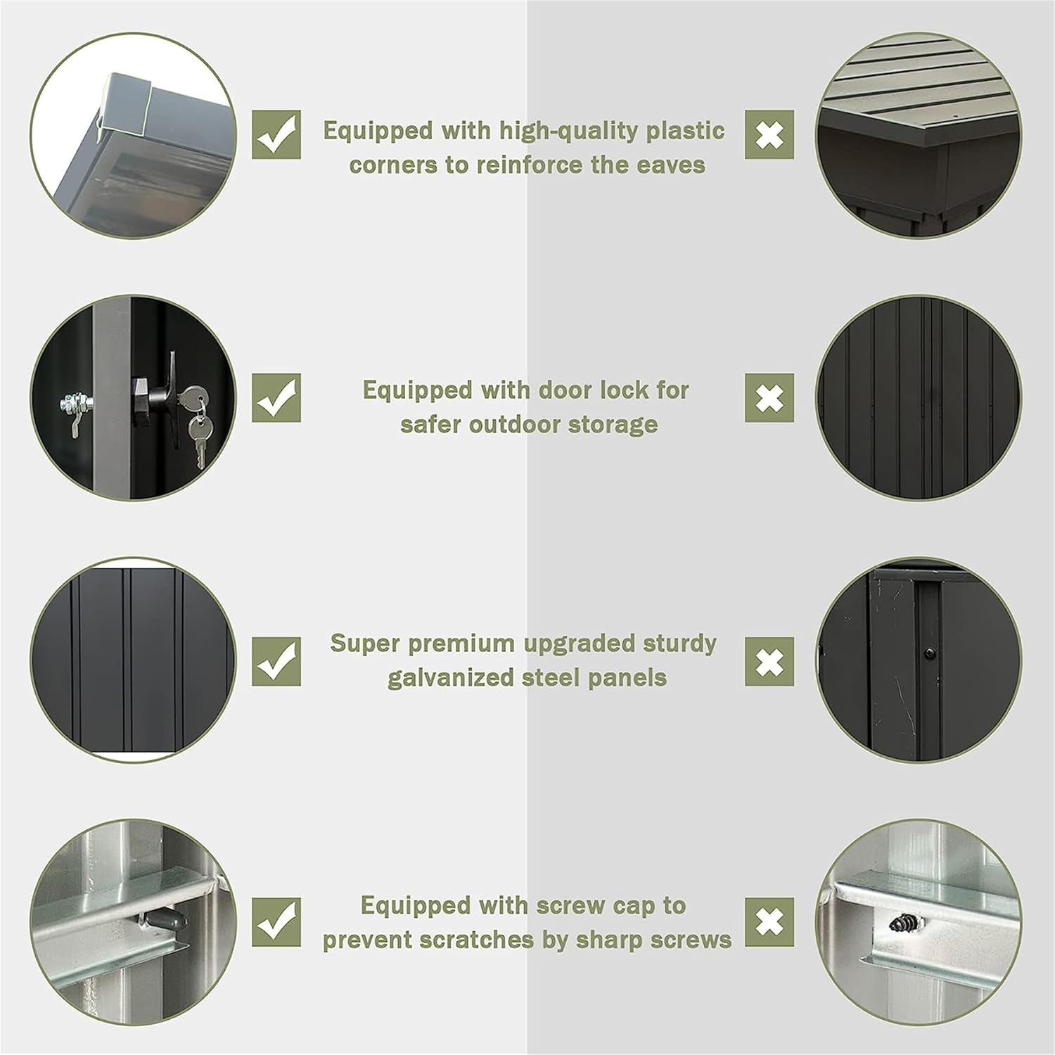 IKERY Compact Galvanized Steel Garden Shed 5' x 3' with Sloping Roof & Lock - Metal Utility Storage for Small Backyard, Balcony - Dark Gray