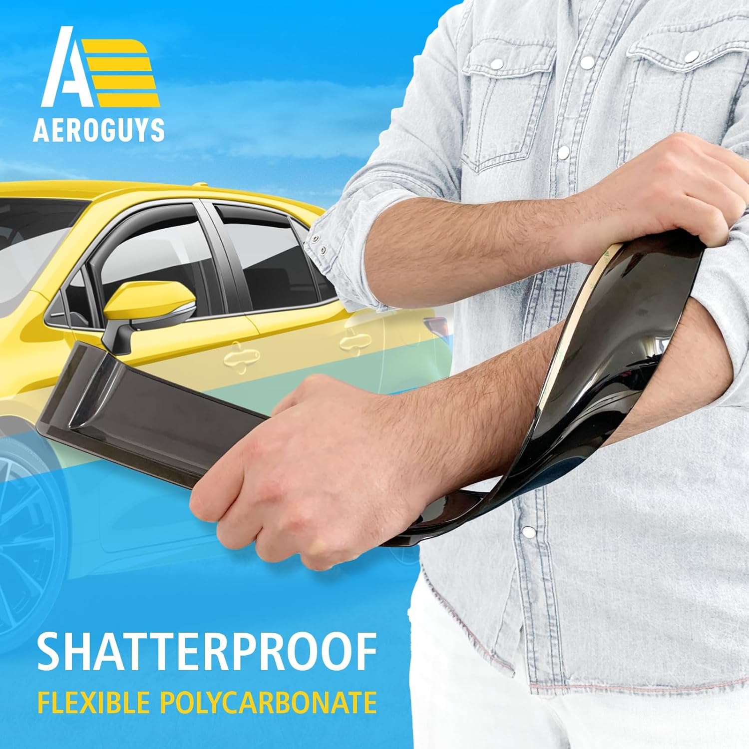- Incredibly Durable AEROGUYS Auto Window Deflectors β They are made with strong and tough polycarbonate which is clear and scratch-resistant. They also provide UV protection making your ride more comfortable under all weather conditions.