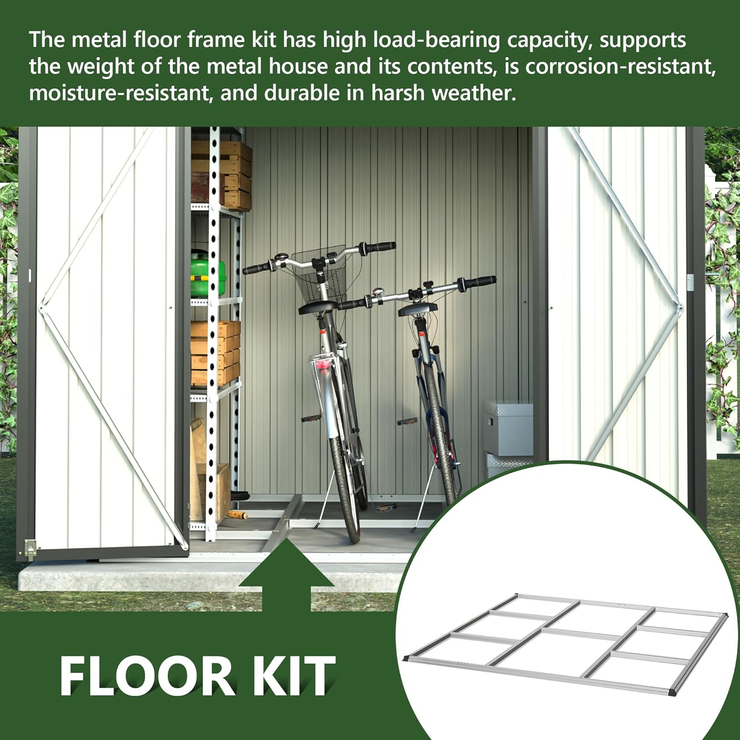 Outdoor Storage Shed, 6 X 6ft Metal Galvanized Steel Garden Shed with Floor Frame, Utility Tool Shed Storage House for Backyard, Patio, Lawn