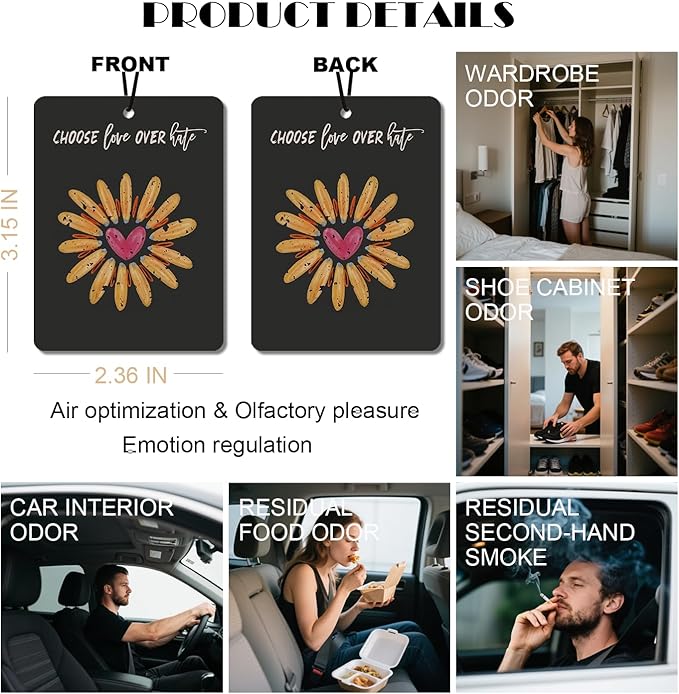 - Dual Purpose: Decor + Positivity:Cheerful flower art and uplifting quotes double as decor. Light scents combat odors (car fumes, food smells) while promoting love - over - hate mindsets—great for creating a warm, fresh space.