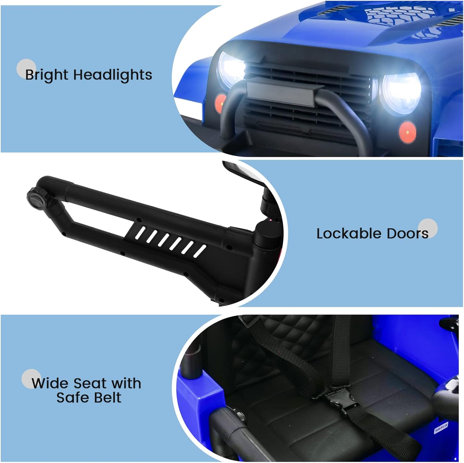 OLAKIDS Kids Ride On Truck, 12V Electric Vehicle Car with Remote Control, Toddlers Battery Powered Toy with 2 Speeds, Spring Suspension, Double Open Doors, LED Lights, TF, Music, USB, Mp3 (Blue)
