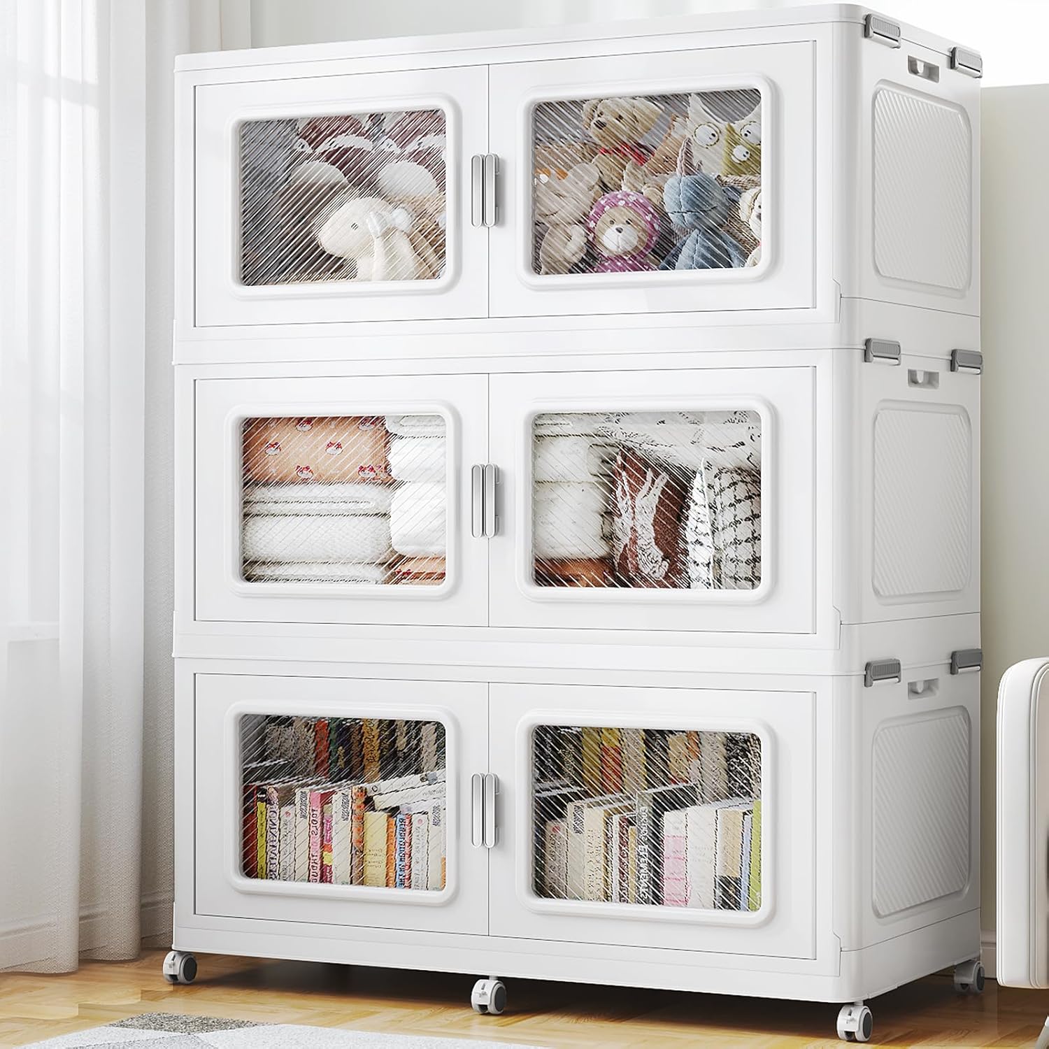 - 【Dual Opening Doors & Easy Access】Broview extra large storage bins feature front double magnetic doors with easy-pull handles for daily quick access and a top lid for direct retrieval of large items like blankets. The huge storage box capacity equivalent to multiple small drawers, they enable organized, multi-level storage—perfect for closets, bedrooms, or nurseries.