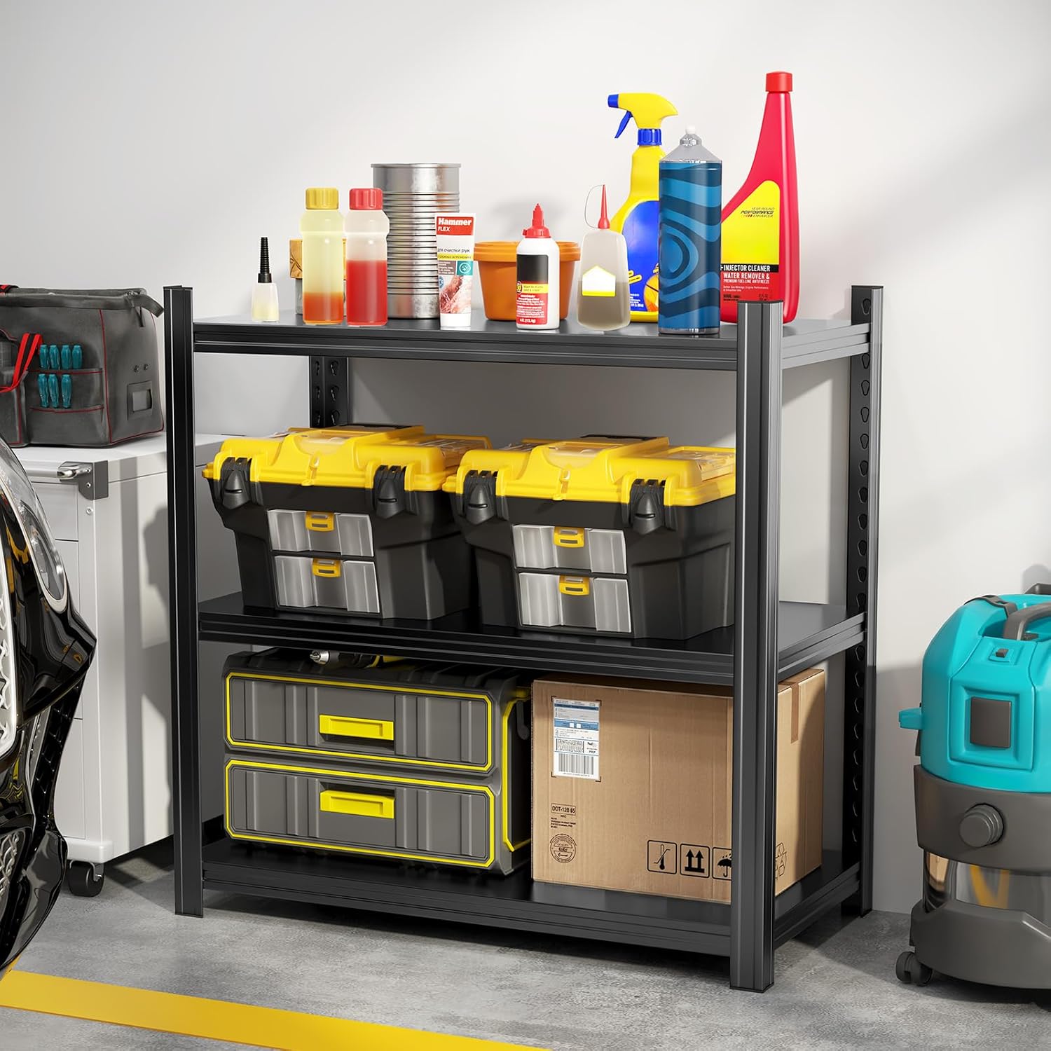 Metal Garage Shelving Unit, Heavy Duty 3-Tier 1050 LBS Loads Adjustable Storage Rack Garage Storage Shelves, Industrial Utility Shelf for Garages, Warehouses, Kitchen, Black