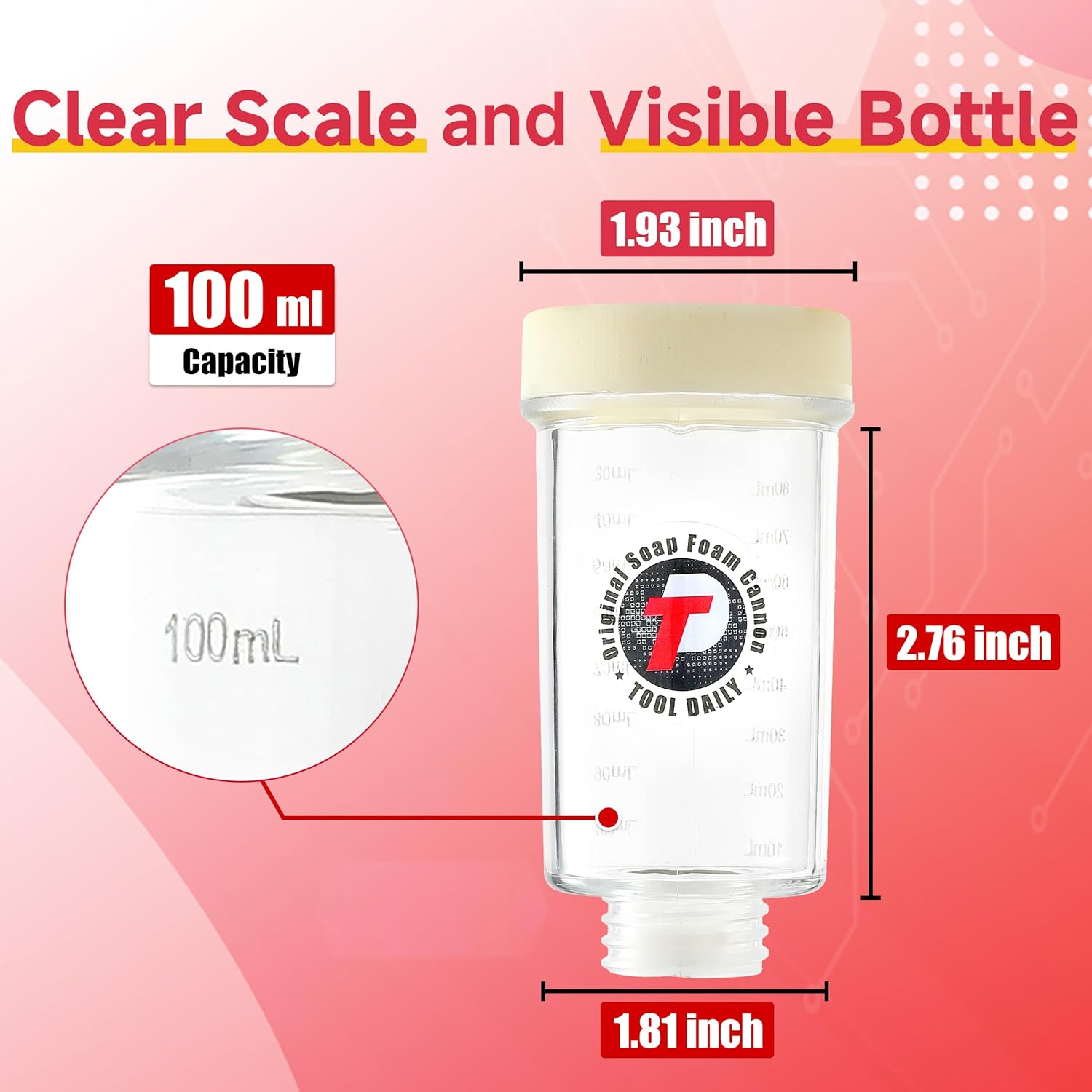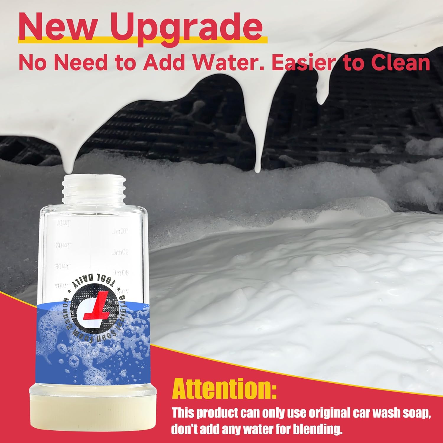 • INNOVATIVE DESIGN: The pressure washer foam cannon is designed for ultimate convenience. Simply add your favorite car wash soap directly into the bottle - no need to dilute it with water. This novel design simplifies the cleaning process, saving you time and effort. Plus, you don’t need to worry about achieving the right soap concentration; the undiluted soap produces thicker, richer foam, ensuring a more effective car washing