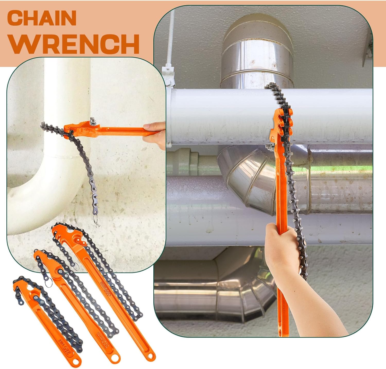 - Durability and Strength: our chain wrenches are crafted from quality carbon steel; Known for its rigidity and long lasting durability, carbon steel ensures that these tools are tough enough to take on any job; Boasting an anti corrosive finish, these orange colored wrenches withstand the rigors of your gritty garage environment