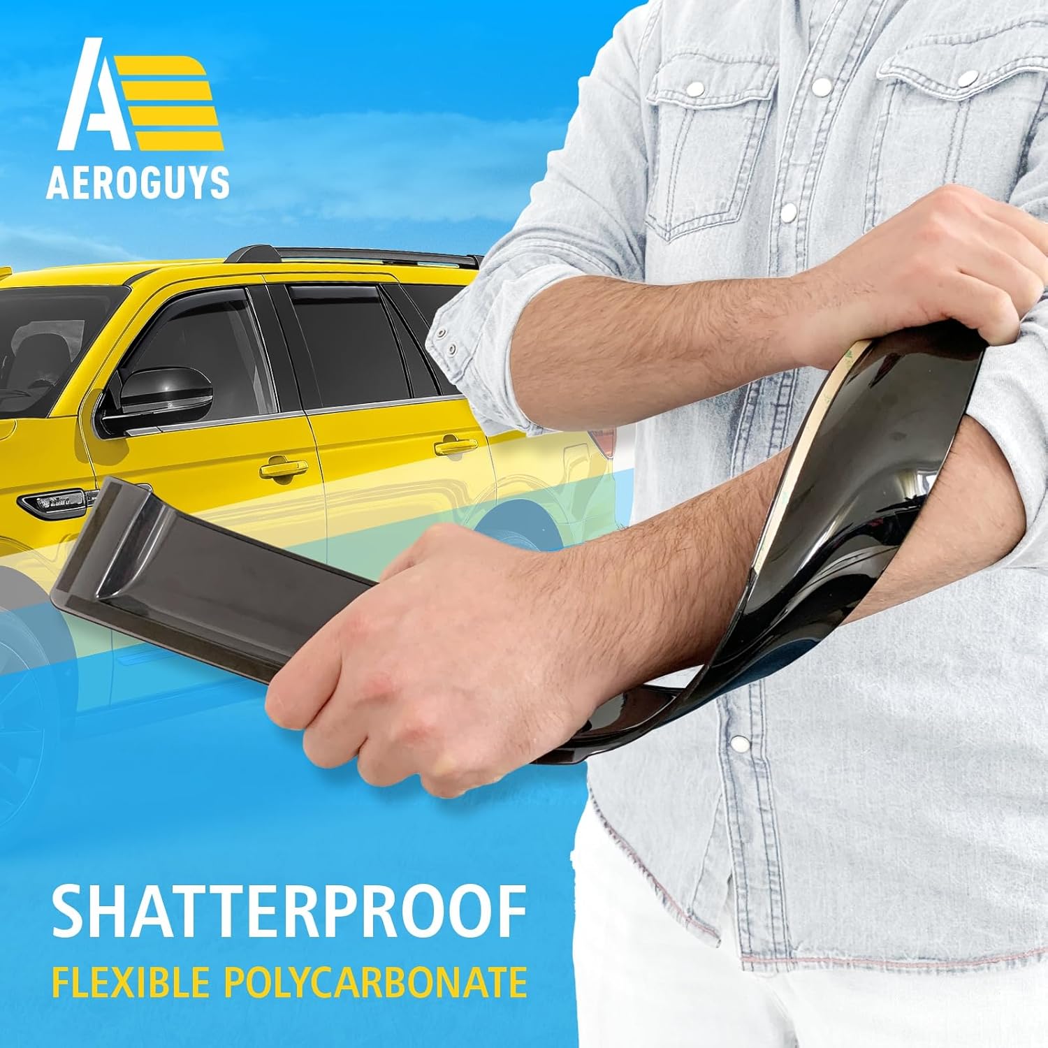 - Incredibly Durable AEROGUYS Auto Window Deflectors β They are made with strong and tough polycarbonate which is clear and scratch-resistant. They also provide UV protection making your ride more comfortable under all weather conditions.