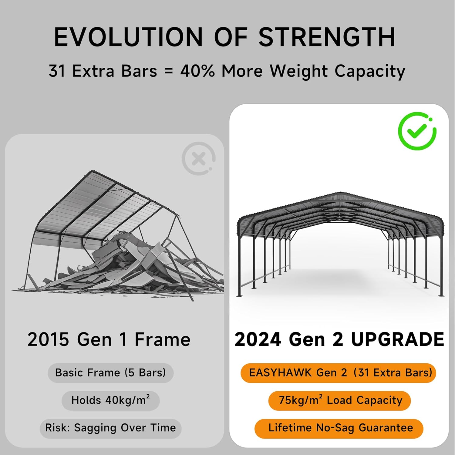 20x30 FT Metal Carport, Enhanced Base and Steel Roof for All-Weather Use, Outdoor Heavy Duty Garage Galvanized Car Shelter for Bass Boats, Full-Sized Pickup Trucks, and Tractors