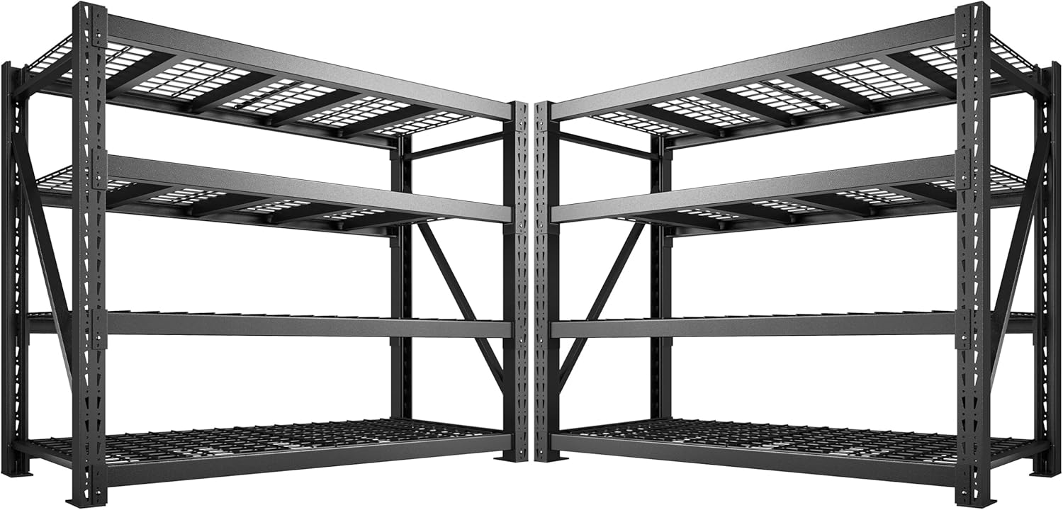 - Industrial-Strength Garage Shelving: 2,750 lbs/shelf (11,000 lbs total) capacity. Reinforced steel beams & seamless columns support machinery/auto parts. Storage shelving joint-free design ensures stability under heavy loads—equivalent to 2+ vehicles. Professional-grade durability.