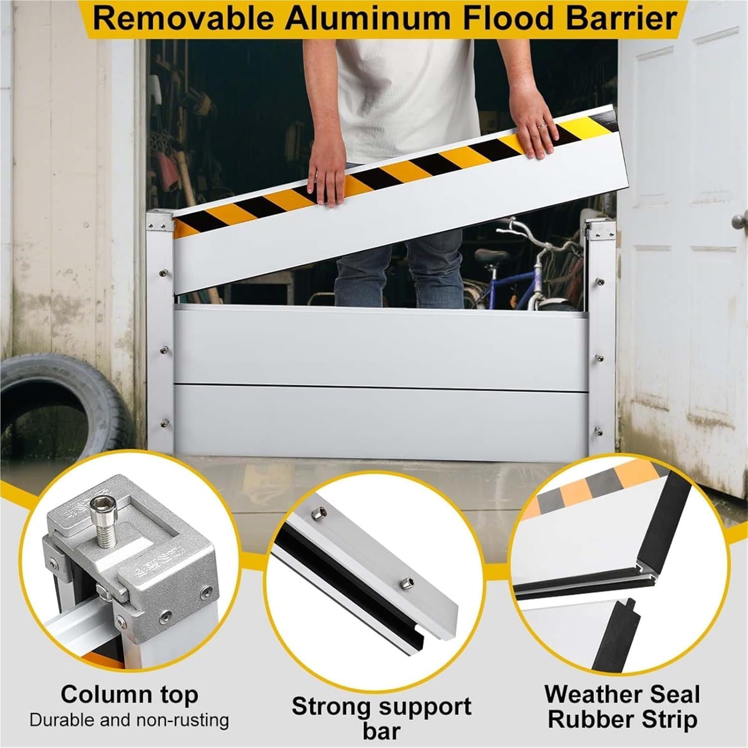 - β Aluminum Alloy Flood Barriers for Home: The Flood Protection Barrier is made of heavy-duty, 4cm (1.5 inch) thickened aluminum panels and aluminum columns, with an oxidized surface for added durability. Surrounded by IPX6-rated ABS rubber strips, it provides reliable partitioning and flood protection, preventing damage caused by severe weather both indoors and in dry areas