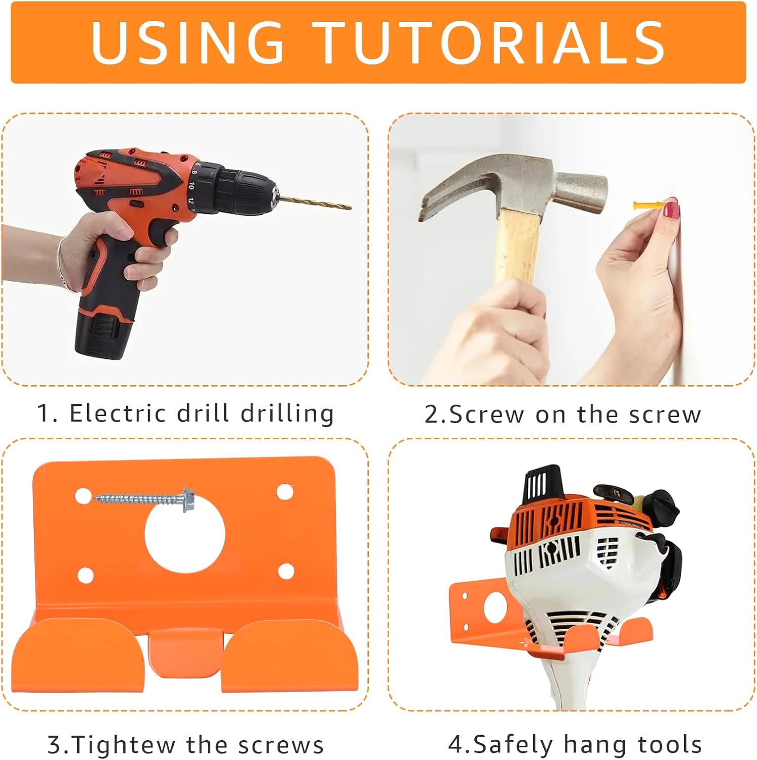 - Application scope: Heavy duty weeding machine wall mounted hanger installation solution. It can be easily installed on drywall, concrete, brick or wood. The storage bracket is aligned with the wall or shed and fixed with marked installation screws. The installation is firm and stable, and the hanger is not easy to fall off. It can accommodate various gardening tools or power tools such as lawn mowers, hedge trimmers, leaf blowers, chainsaws, drills, sports equipment, bicycles, hoses, cables, snow shovels, etc. in your garage or yard for easy storage