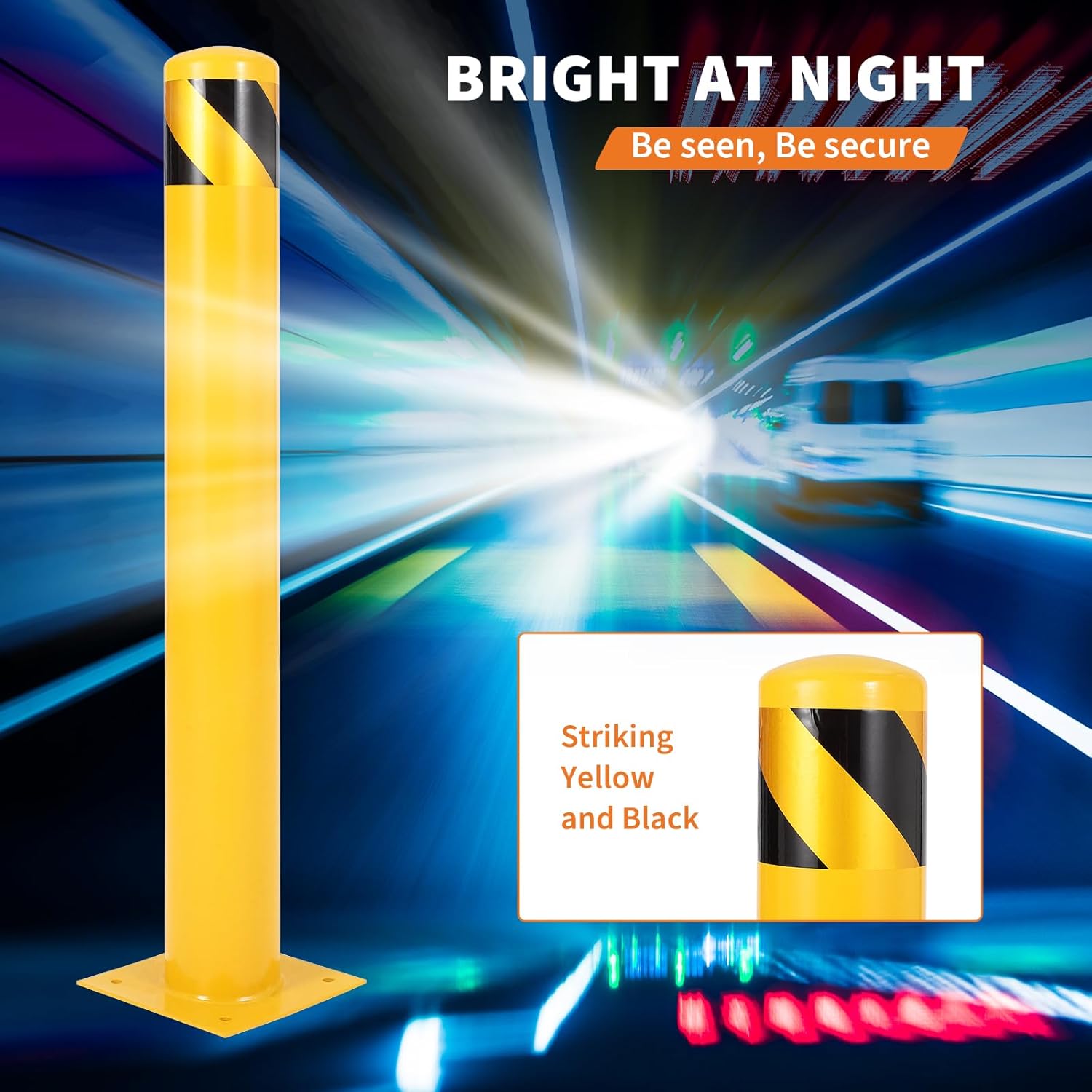 4.5x42 Inch Safety Bollard Post - Yellow Steel Bollard with Anchor Bolts (1-Pack) for Parking Lots, Walkways & Traffic Areas