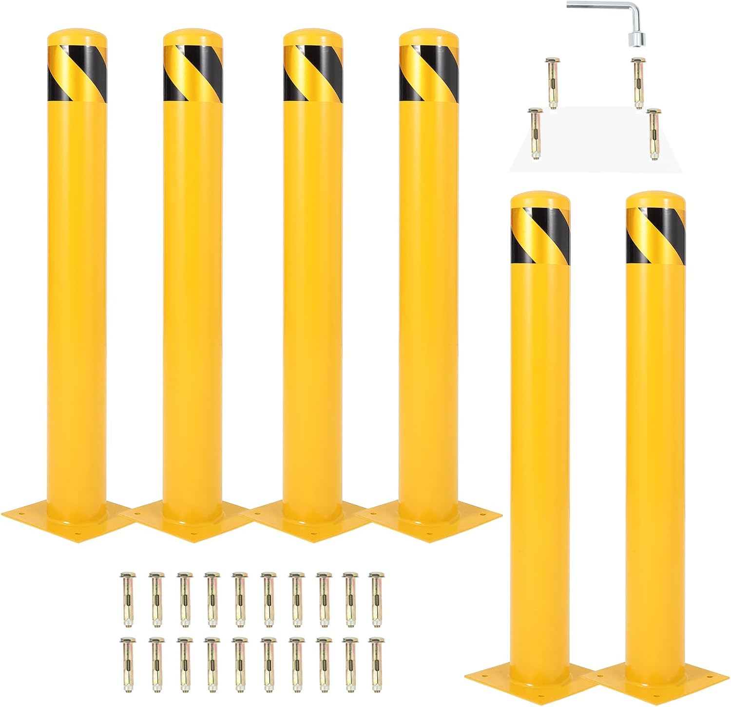 4.5x48 Inch Safety Bollard Post - Yellow Steel Bollard with Anchor Bolts (4-Pack) for Parking Lots, Walkways & Traffic Areas