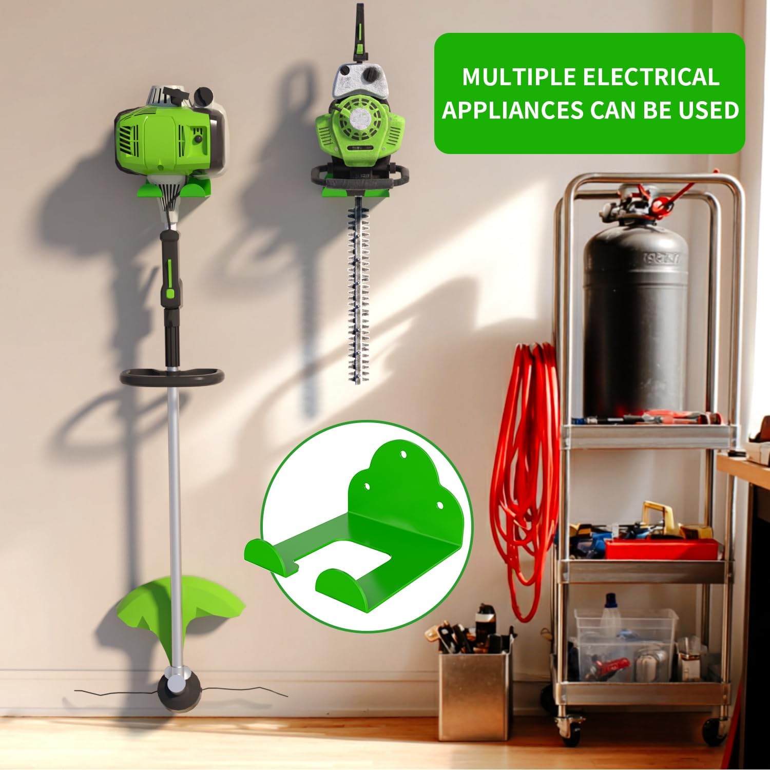 Trimmer Rack Wall Mount, Heavy Duty Weed Eater Hanger for Grass Trimmer, Hedge Trimmer, Leaf Blower, Chainsaw, Garage Organizer Tool Holder with 6.2" Hook for Garage Storage Shed Organization, Green