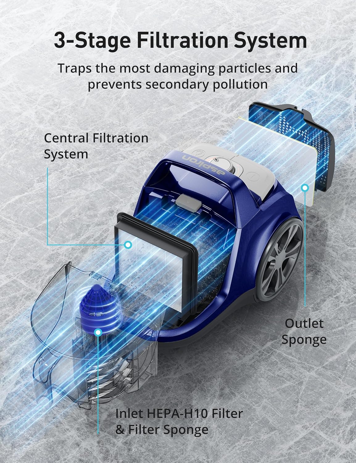 - Powerful Multipurpose Cleaning: The efficient brushless motor of the Aspiron canister vacuum cleaner generates over 30Kpa of strong suction for vacuuming dust, dirt, pet hair, and more
