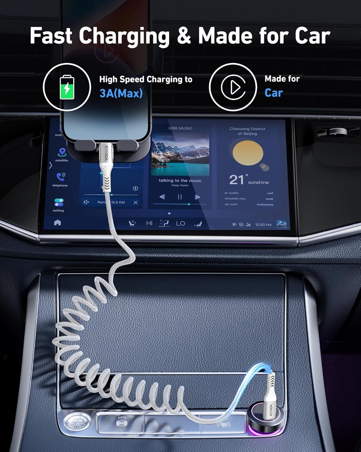- Special Feature : Braided, Coiled/Retractable, Fast Charging, Made for Car