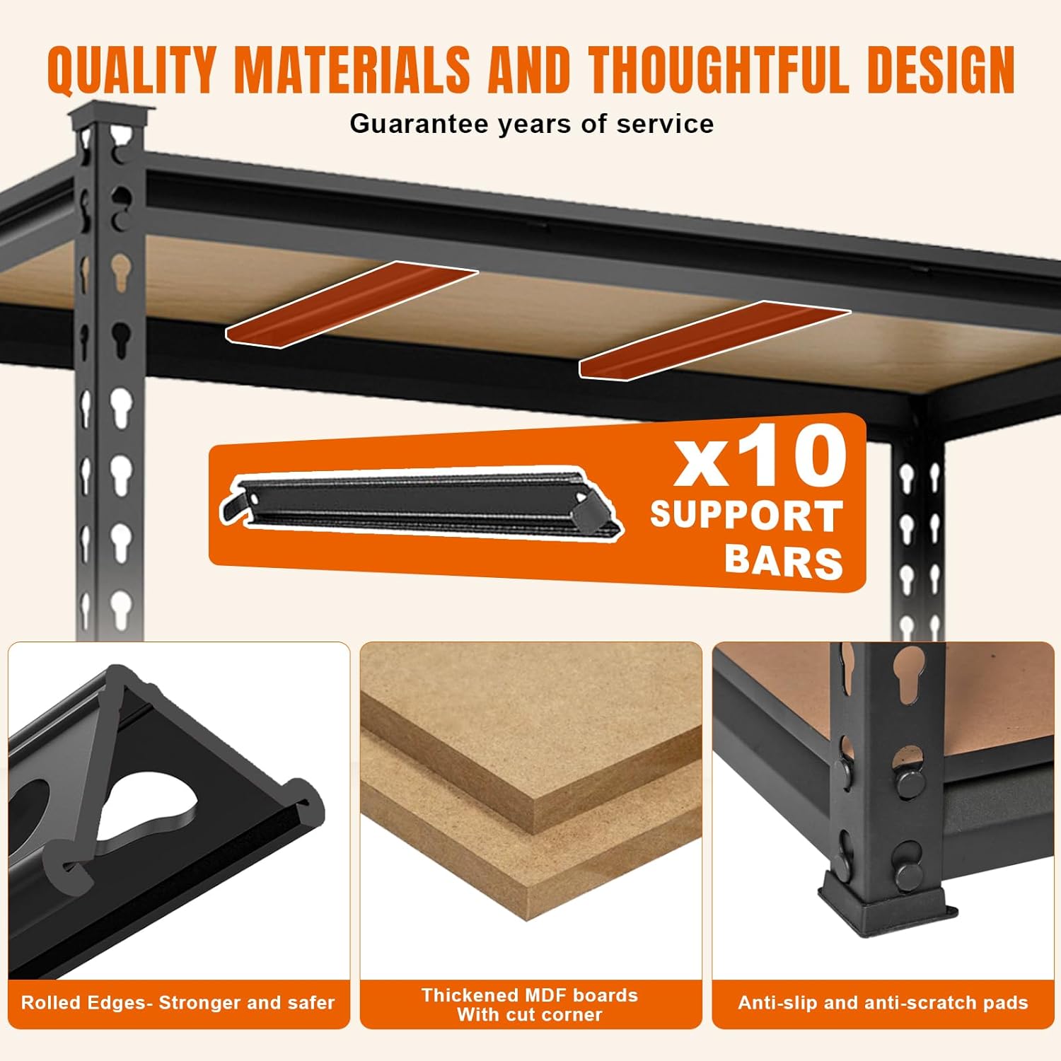 - Professional Support & Best Gift: There are many parts and installation manual in the package. Please tell us the first time if there are missing parts and assembly. You don't have to worry about scratches on the floor of metal garage shelving, which is perfect choice for gift-giving or housewarming.
