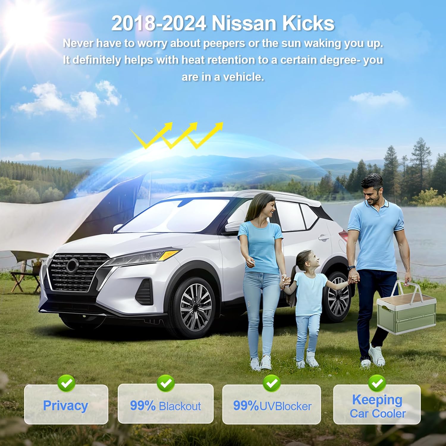 - Designed specifically:SHINELINERS full window sunshade is specially designed for Kicks 2018 2019 2020 2021 2022 2023 2024.Provide your car with comprehensive UV and infrared protection, not only keeping the interior cool in hot weather but also extending the lifespan of the car's interior