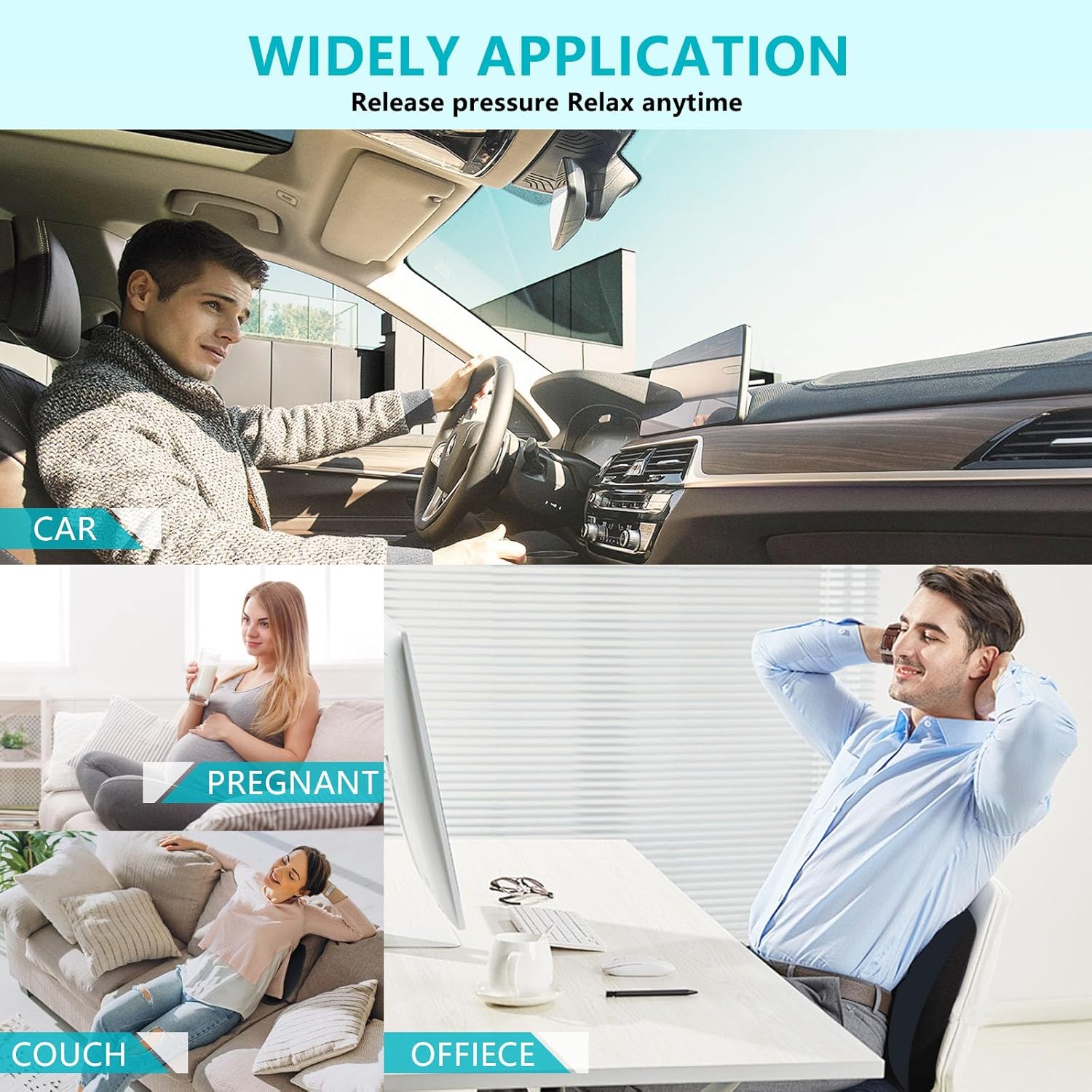 - Pressure Relief & Pain Alleviation: Our seat cushion is meticulously designed to hold up the thighs and hips, significantly reducing direct pressure on the hips, and legs. This unique design feature helps alleviate discomfort from long sitting and driving, making it an ideal choice for long hours of sitting at the office, home or car