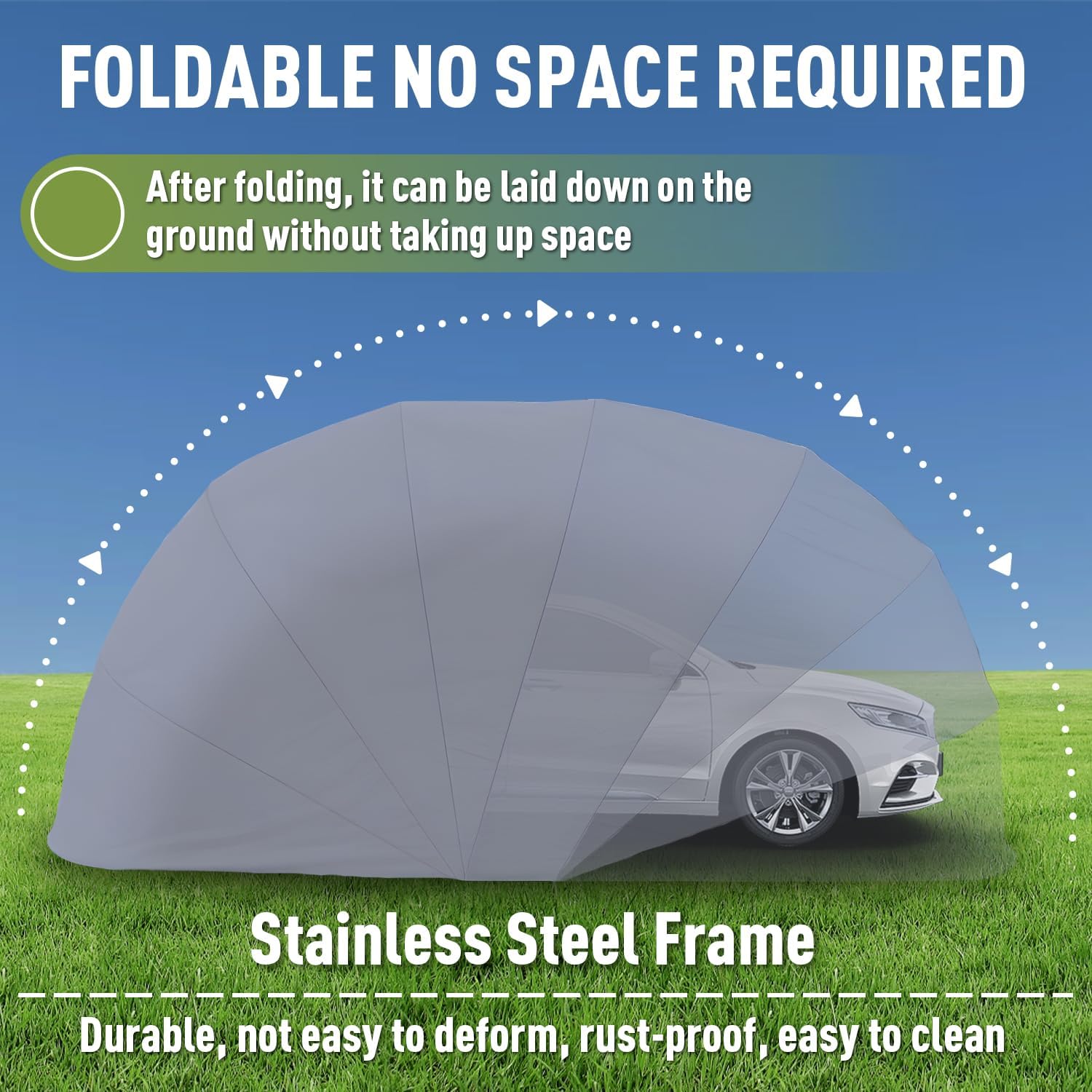 - Multi-Functional Folding Design : The folding car port tent has multiple uses. It can be used as a fixed carport, a mobile garage or an outdoor awning to meet a variety of needs. This folding garage is equipped with a hydraulic telescopic rod. When you need to open the garage, you only need to gently lift the carport upwards to open it easily