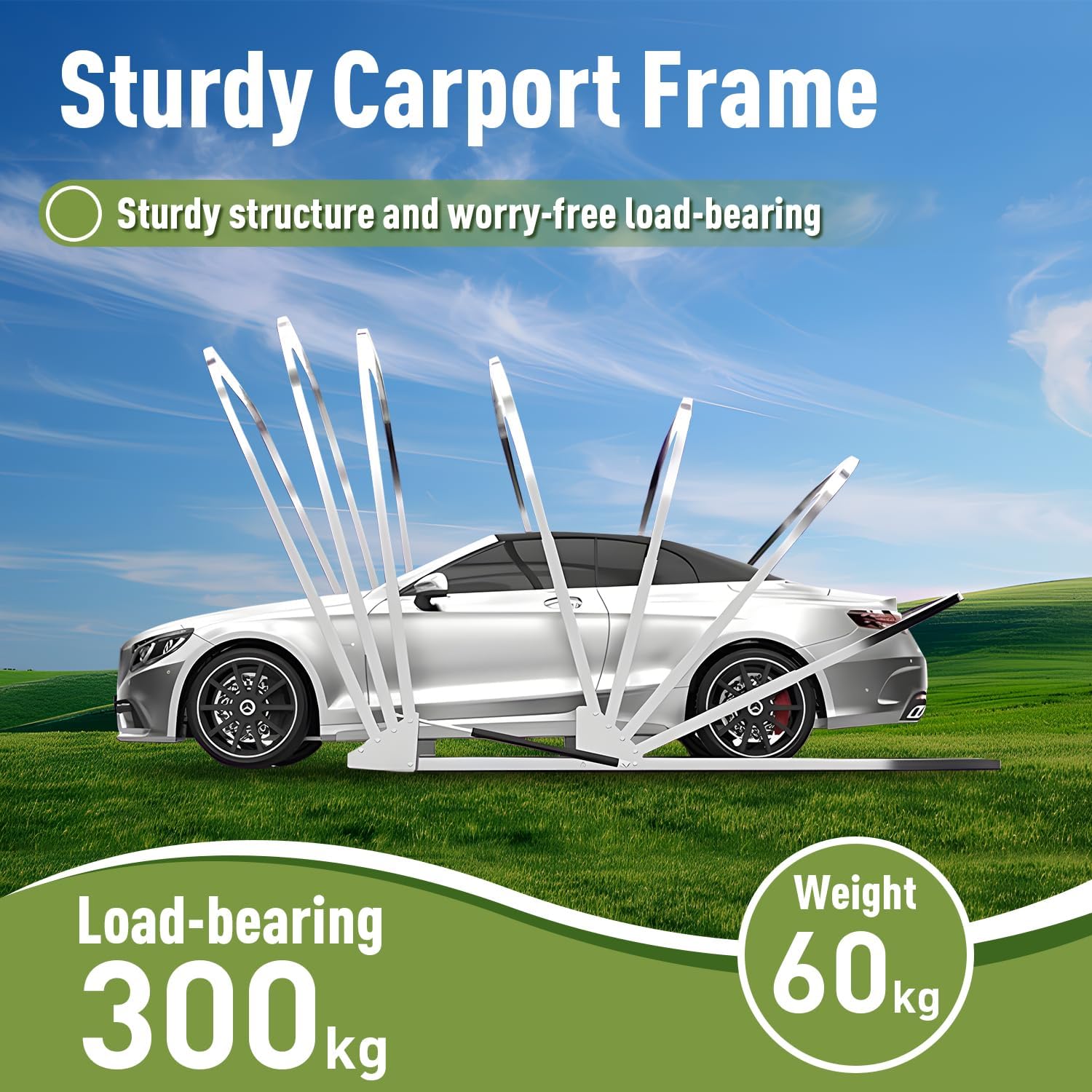 - Sturdy & Durable : The heavy-duty carport measures 18 feet long (about 5.5 meters) Γ 8.2 feet wide (about 2.5 meters) Γ 7.5 feet high (about 2.3 meters), which can easily accommodate small and medium-sized cars such as sedans. It can support up to 300 kg and remains stable on all surfaces and is suitable for cement, mud, marble and other floors