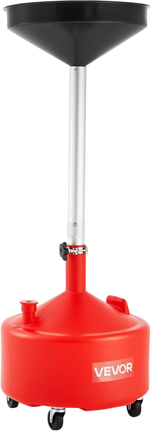 VEVOR 8 Gallon Waste Oil Drain Tank, Industrial Fluid Drain Tank with Adjustable Funnel Height, Portable Oil Drainer with Wheels, Fluid Fuel Transfer Drainage for Auto Repair Shops, Garages, Red