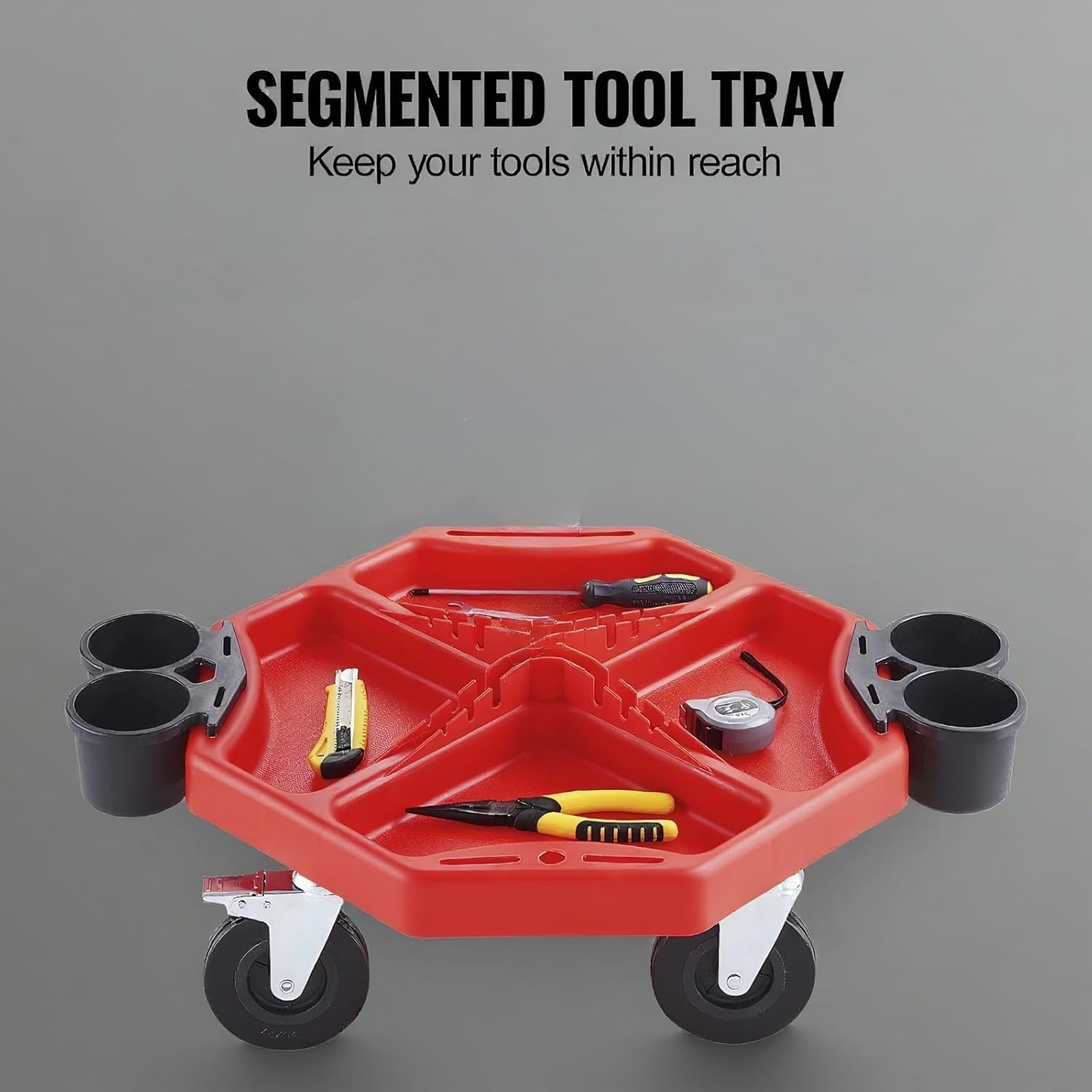 - Store & Organize Your Kit: Our rolling stool comes with a peculiar design that has solved the storage issue. With the large plastic tool tray, you can organize your equipment in order and keep them within reach. Put a storage compartment inside the footrest!
