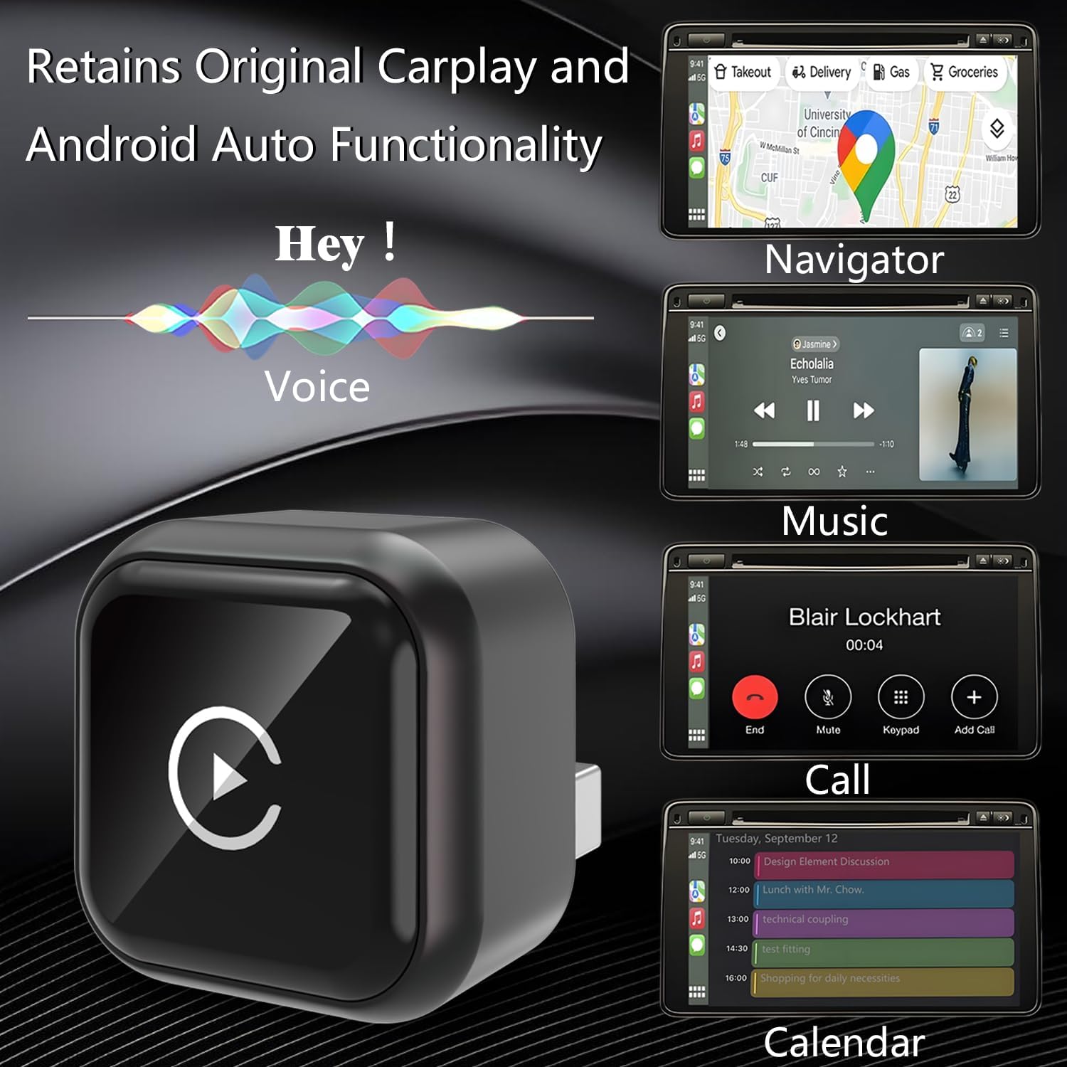 - ăPlug and Play ,Without Complex SettingsăYou can start using it by pairing it with Bluetooth. It can turn the factory wired Carplay and Android Auto function into wireless, realize navigation, voice, music, call, calendar and other functions. You only need to set up once, and the next time you start your car, you can realize automatic connection within 5-10s, which greatly improves your traveling efficiency.