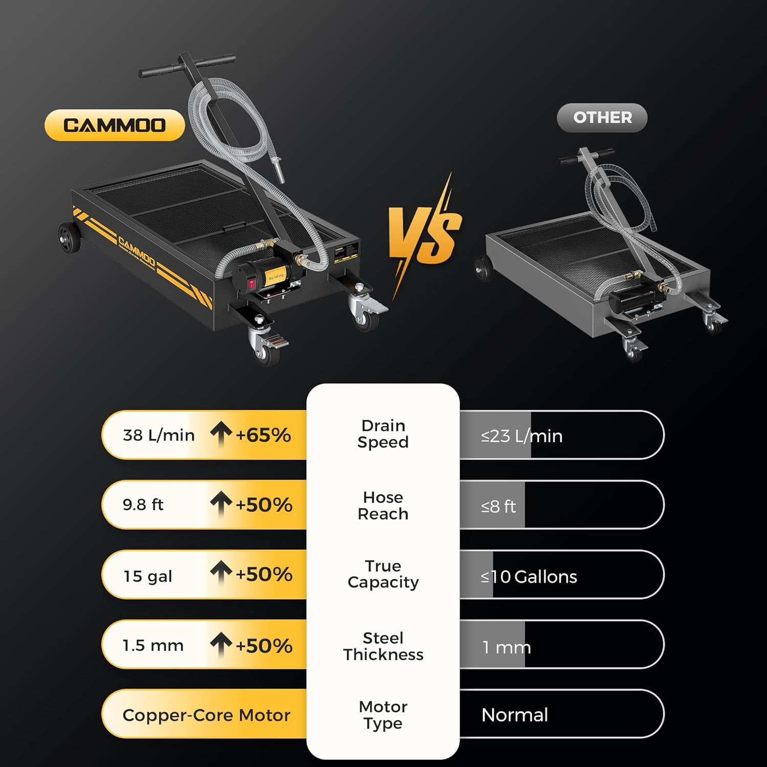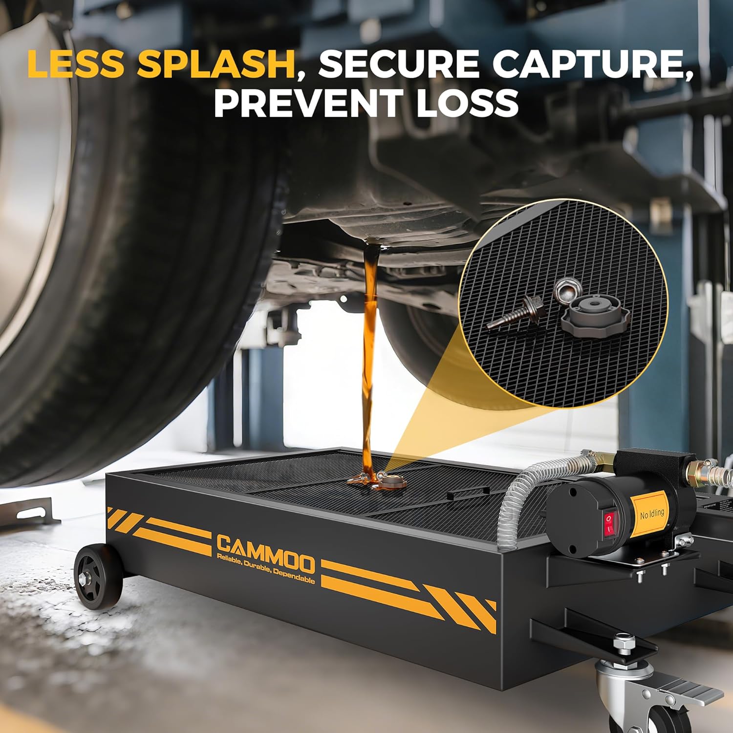 - High Capacity:Oversized 31.5" x 19.7" x 5.7"Steel tank delivers a verified 15 gallons and provides a bigger footprint than standard oil drain pans so shop owners, fleet managers, farmers and DIYers can drain a full-size pickup, two RVs or four sedans in one go with less lifting, fewer trips to the recycler and more time for paid jobs. It works with all common waste oils (motor, hydraulic, etc.)—gasoline explicitly excluded.