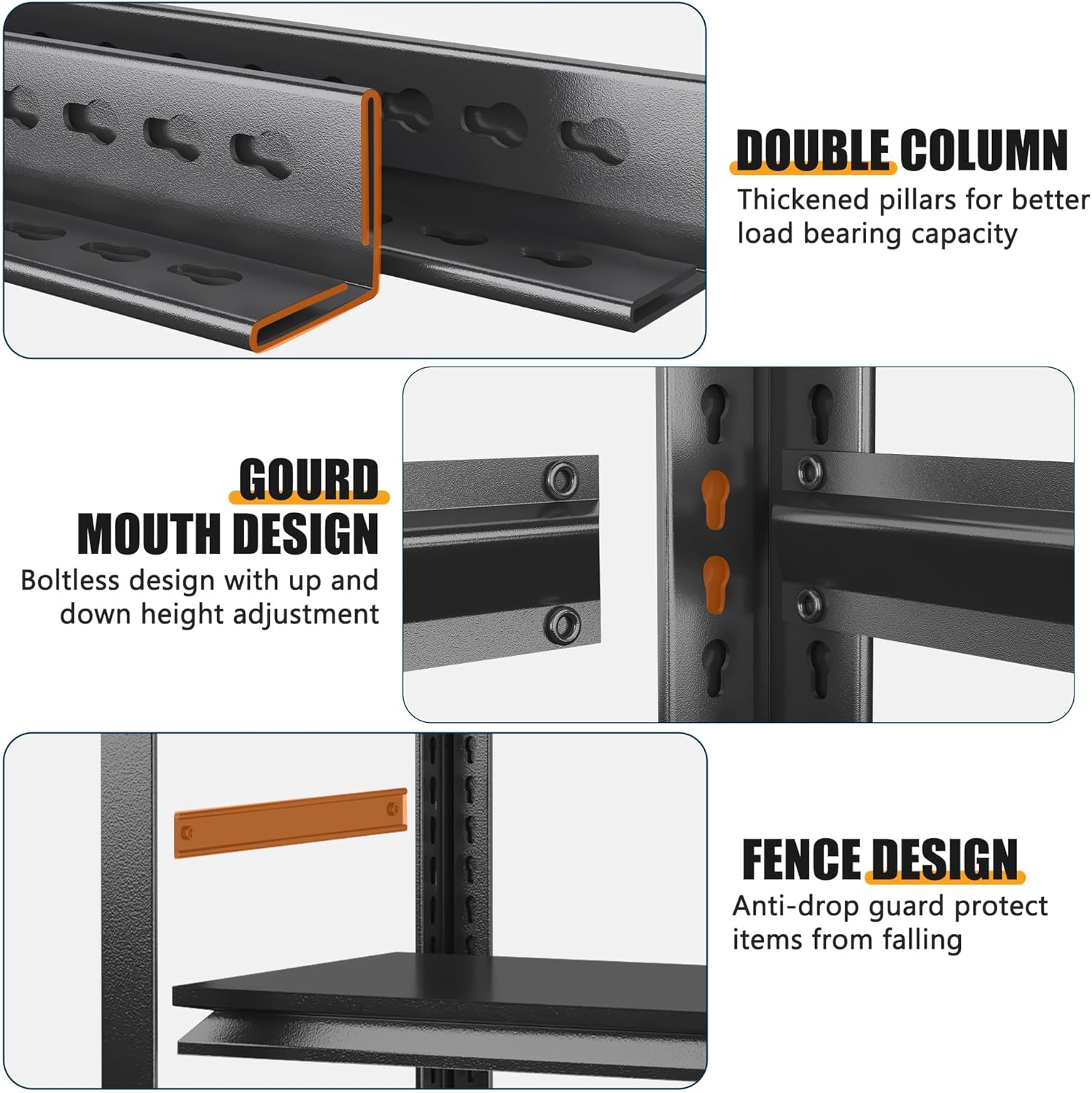 - ăHeavy-Duty Industrial ConstructionăCrafted with ultra-durable steel and reinforced cross beams, this 87''H commercial shelving unit delivers unmatched strength for demanding storage needs. Each shelf holds up to 750 lbs, ensuring reliable support for heavy tools, equipment, bulk supplies, or seasonal items. Perfect for warehouses, garages, and industrial settings.