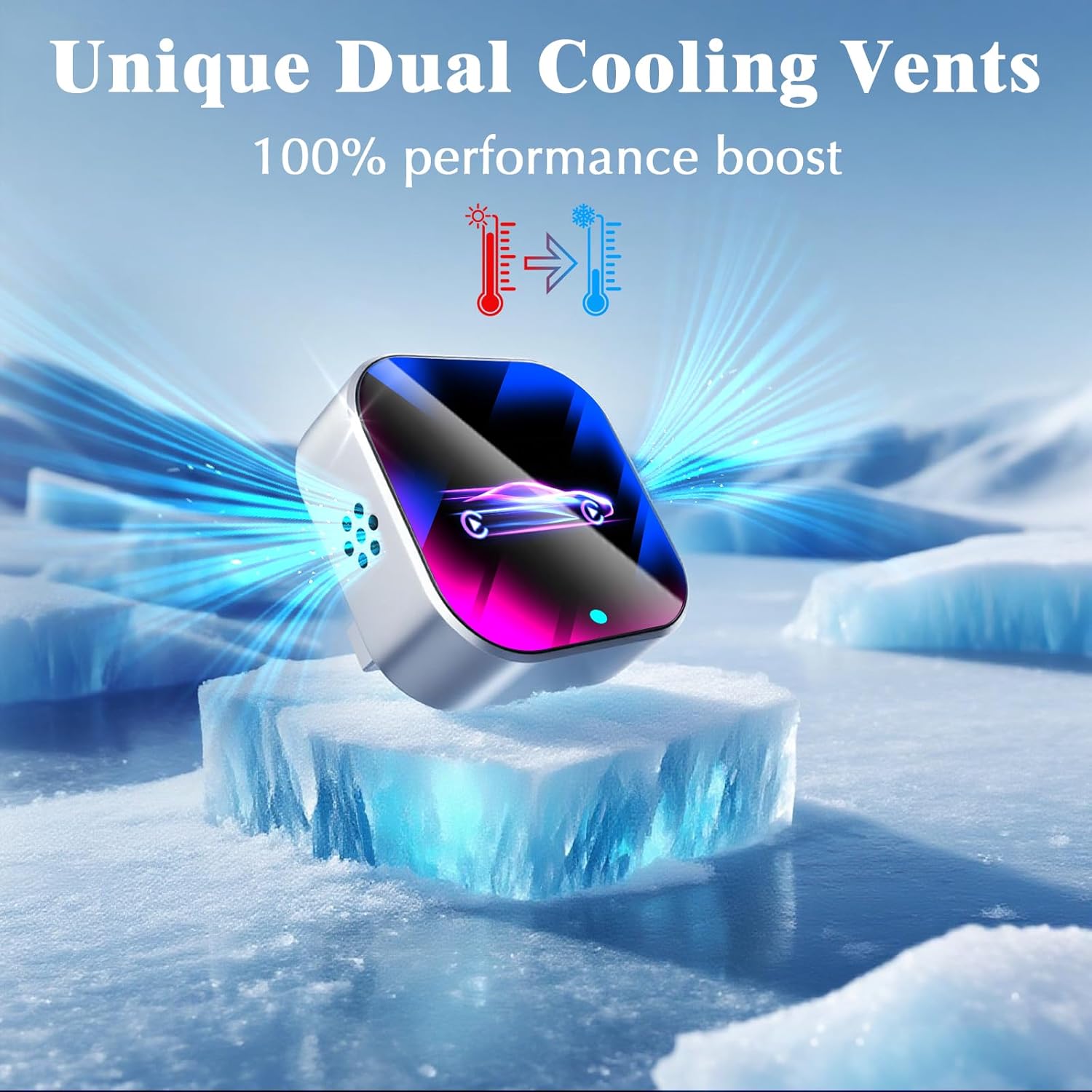 - ❄️【Durable and Efficient Heat Dissipation】The CarPlay adapter's USB port has been tested for over 10,000 insertion cycles, fits firmly without swing and keeps stable even on rough roads, guaranteeing universal compatibility and long-term durability. Additionally, the USB CarPlay wireless adapter features a unique heat dissipation hole design that enables efficient convection cooling, preventing overheating during prolonged use and maintaining stable performance.