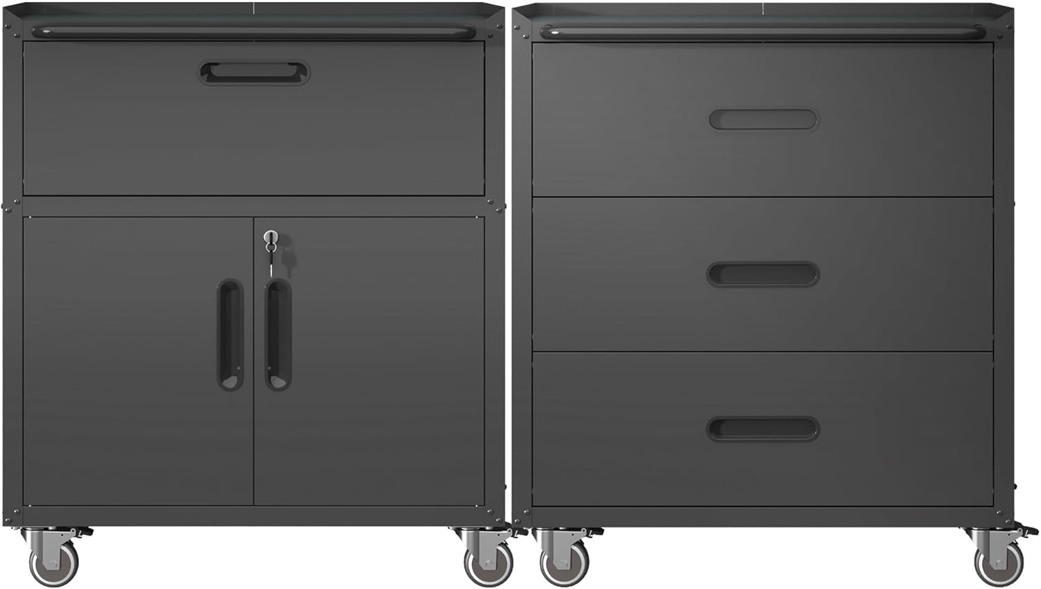 Metal Tool Cabinet,Garage Storage Cabinet System,Wall Cabinet & Locking Rolling Tool Cabinet with Doors and Adjustable Shelves,Steel Tool Cabinets for Home,Office (2 Pcs-StyleE, Black)