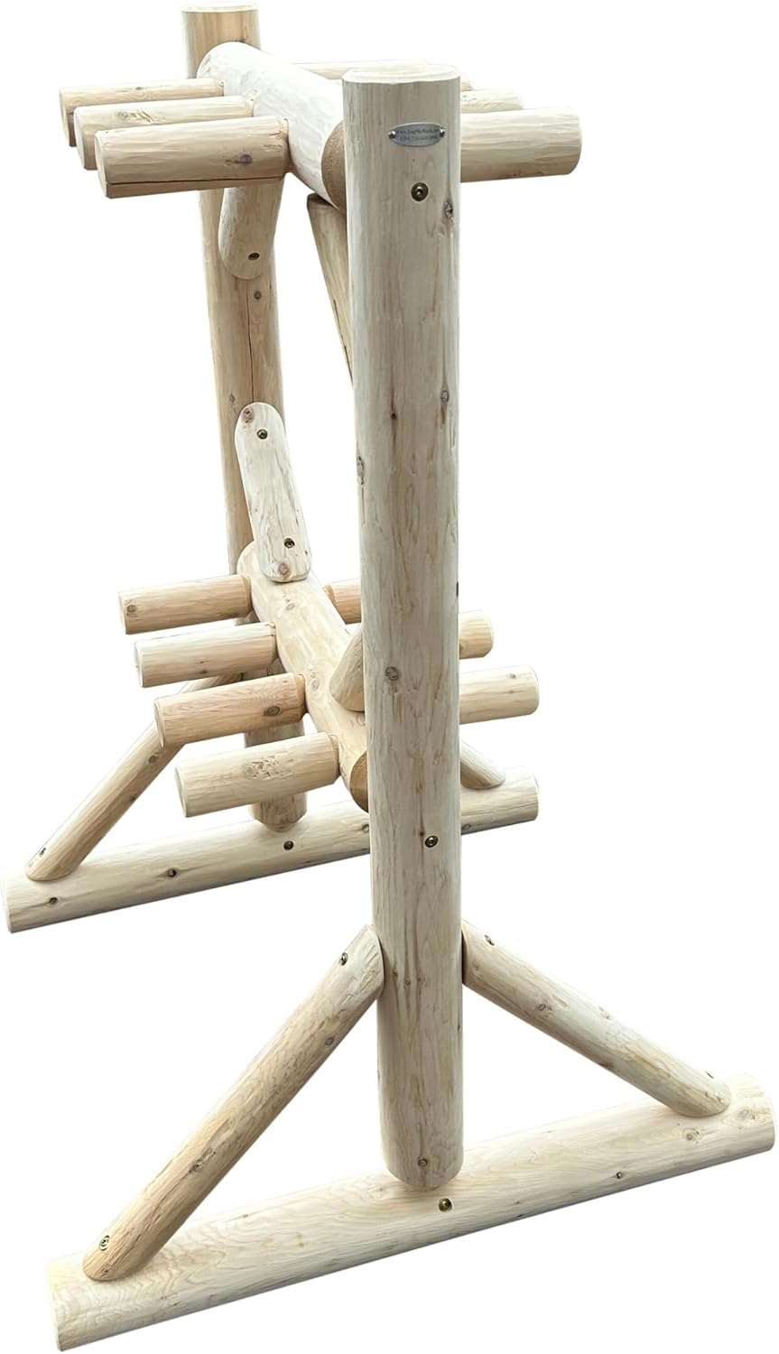 - 100% NORTHERN WHITE CEDAR CONSTRUCTION: Made from solid Northern White Cedar, this durable wood storage rack blends naturally with outdoor environments and holds up well in changing weather. It's suitable for both ski and snowboard storage, whether indoors or outdoors. The natural cedar look enhances any setting, while offering strong performance as a ski rack for garage, cabin, or home garage sports equipment organizer.