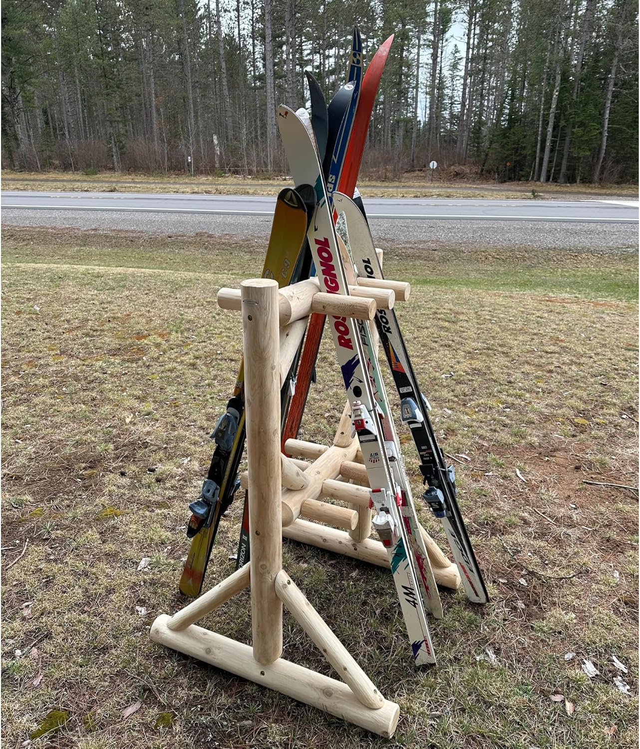 - HANDMADE IN NORTHERN WISCONSIN BY LOG ARTISANS: Each rack is handcrafted in Wisconsin by skilled log artisans with decades of experience. Designed for reliable ski storage rack for garage or outdoor use, it reflects attention to detail and durable construction. Proudly made in the USA, it’s a fitting choice for anyone needing a dependable ski holder, snowboard stand, or custom-built ski and snowboard storage system for their home or lodge.