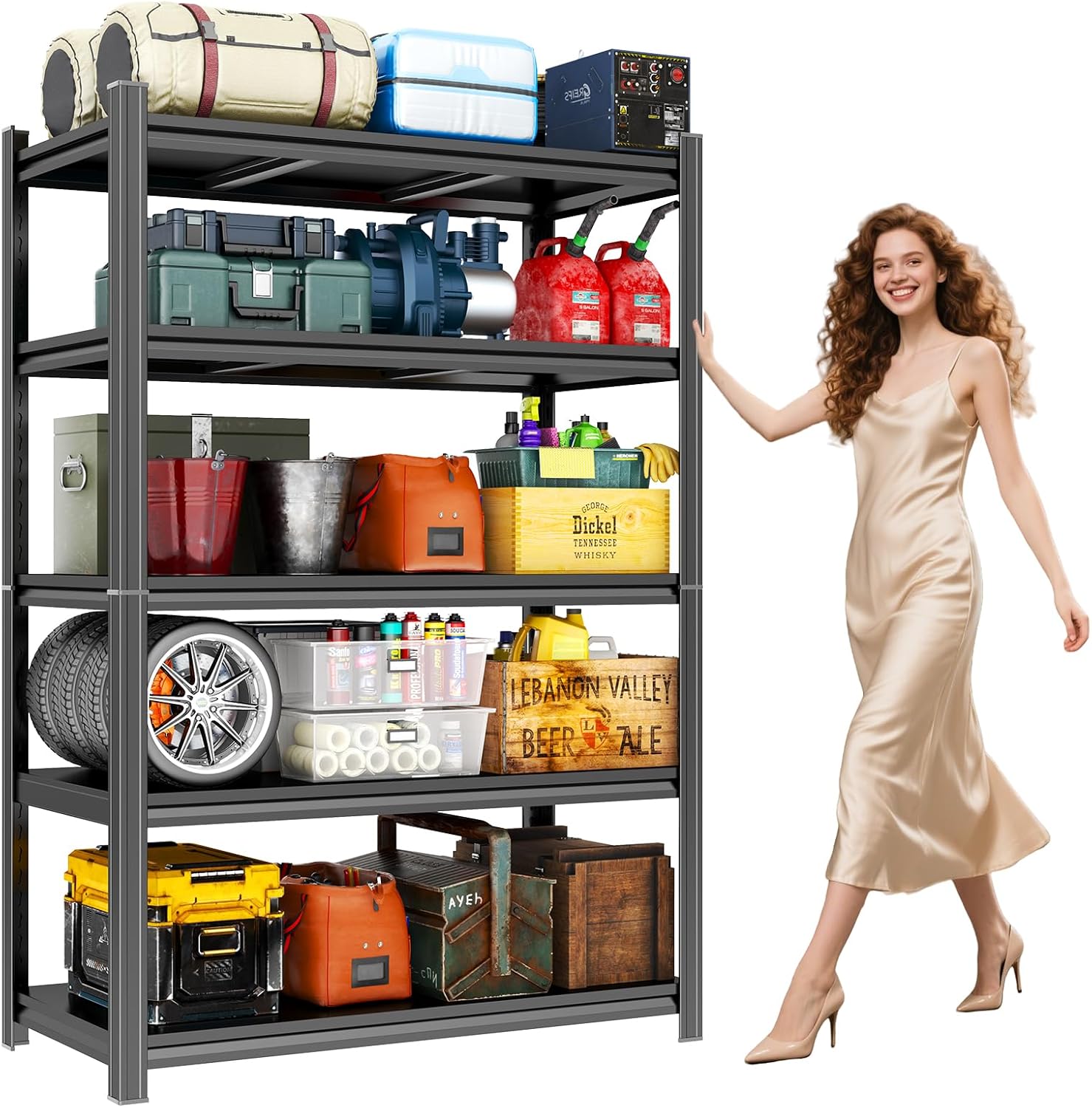 Garage Shelving Metal Storage Shelves 3500Lbs Garage Storage Shelves Heavy Duty 5-Tier Adjustable Shelving Units for Industrial, Warehouse, Basement, Commercial, Black