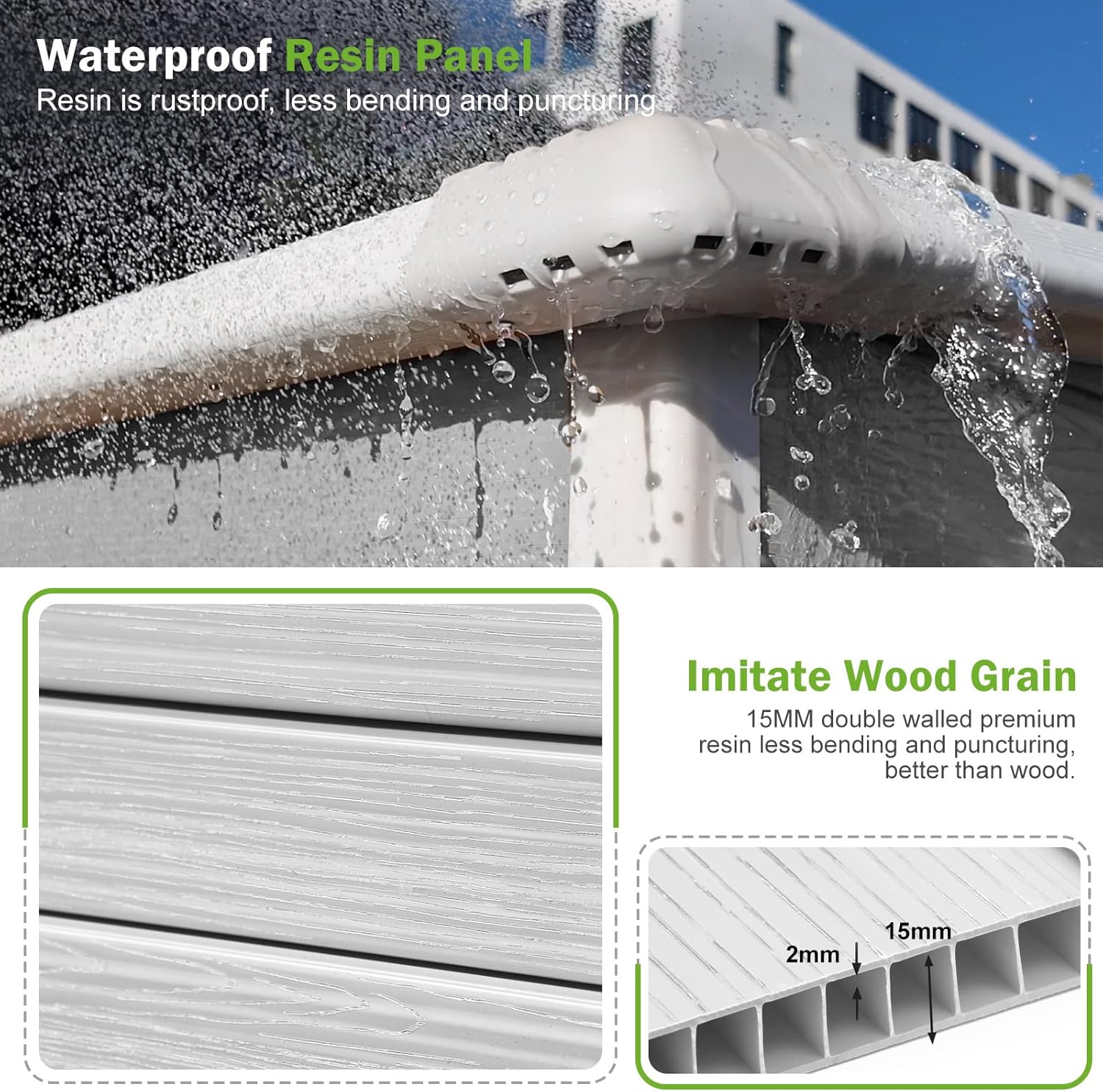 • 🏠PREMIUM RESIN MATERIALS:Our durable storage shed is crafted with 14MM premium polypropylene resin plastic, which is thicker than others in the market. Resin shed is waterproof, rustproof and UV-resistant, less bending and puncturing, worry-free for use in all weather conditions. It is a great shed house for your backyard, patio and garden.