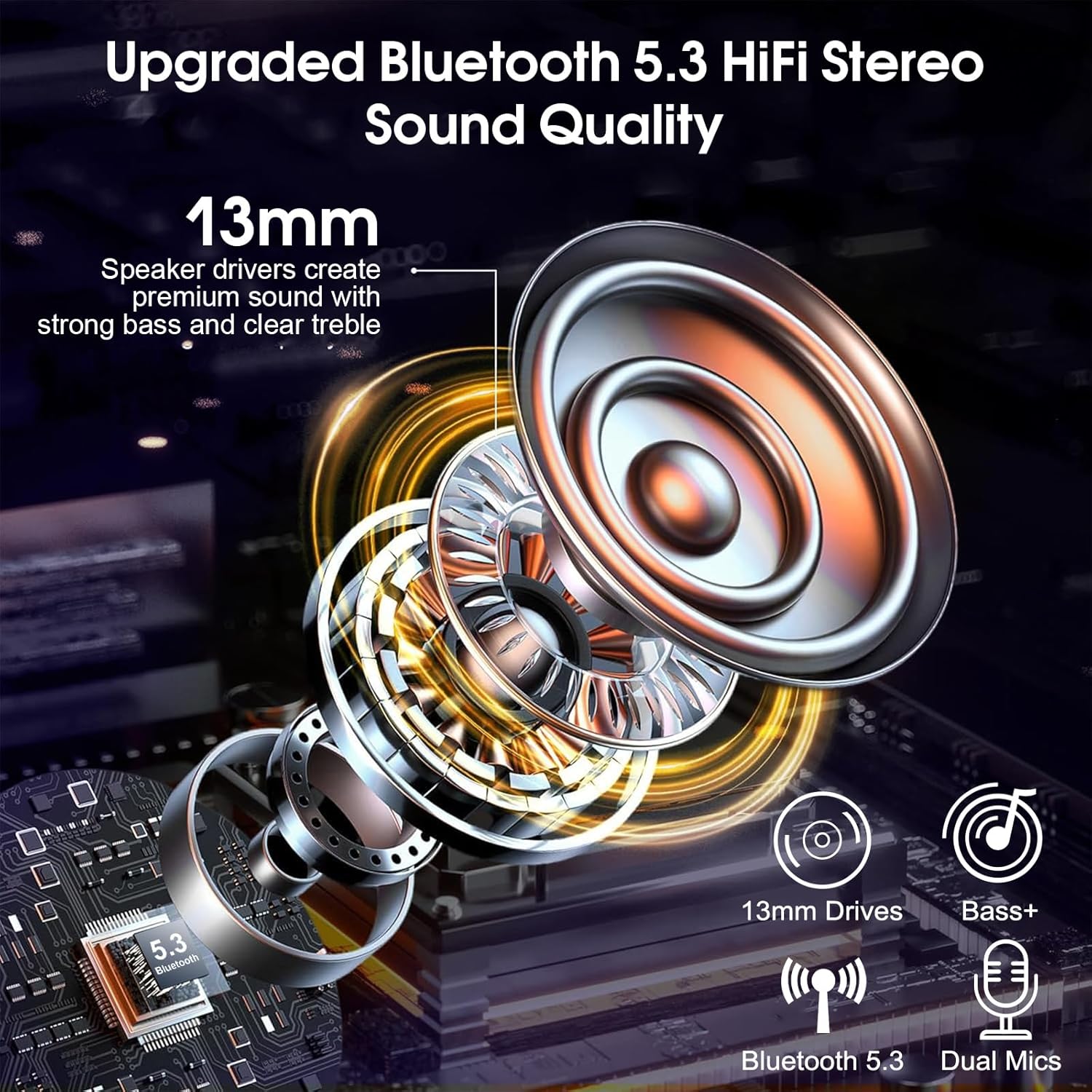- Dual Noise Cancellation Technology: This wireless earphone uses ENC and CVC 8.0 dual noise reduction systems to effectively identify and reduce ambient noise, making calls clearer and purer. The built-in high-sensitivity microphone can accurately convey every word even in noisy places. The bluetooth earphone's efficient noise suppression algorithm greatly reduces background interference and ensures stable sound transmission. Whether outdoors or indoors, you can enjoy a clear voice experience.