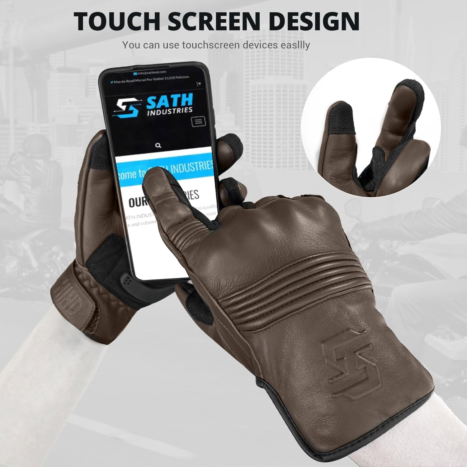 Leather Motorcycle Gloves for Men and Women | Touchscreen | Full Finger | Goatskin Leather Hard Knuckle Motorcycle Riding Gloves (Classic Brown, Small)