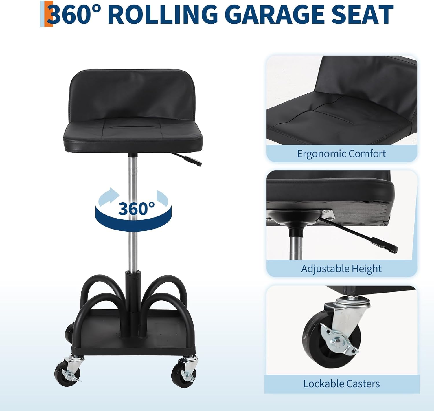 - Convenient Tool Storage: Keep your tools close at hand with a spacious built-in magnetic tool tray under the seat, making it ideal for mechanics, detailers, and anyone needing quick access to tools.