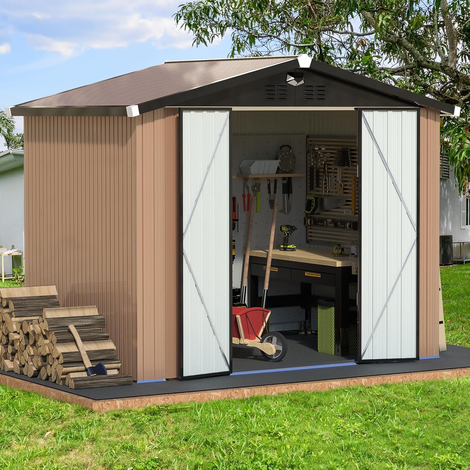 Metal Storage Shed,Outdoor Storage Building 8x6,Large Backyard Shed with Lockable Door,Waterproof Outside Storage Shed