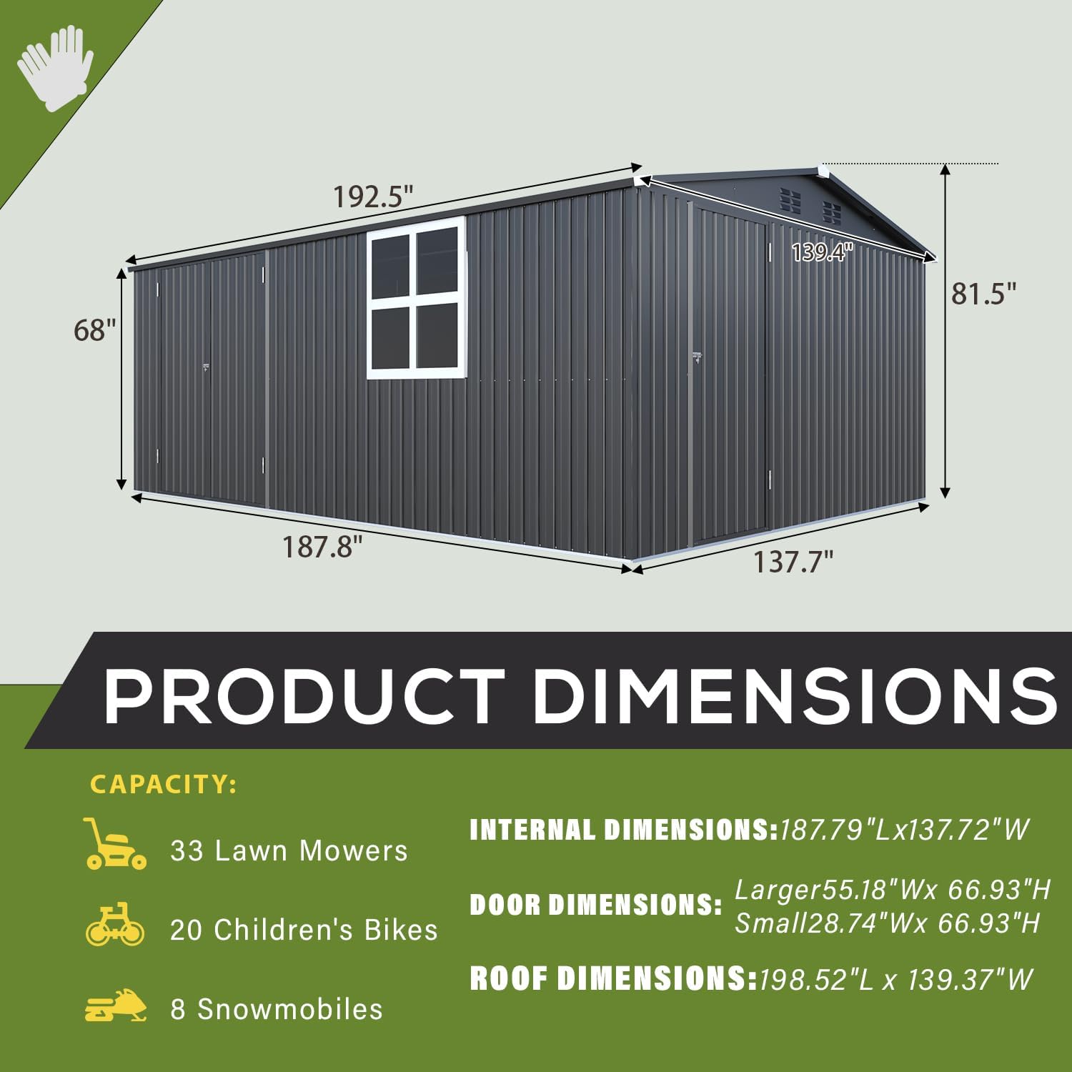 AECOJOY 16' x 12' Outdoor Storage Shed, Large Metal Sheds & Outdoor Storage Clearance 12x16 with Windows, Steel Backyard Shed, Utility Tool Storage for Garden, Patio, Outside use in Dark Grey
